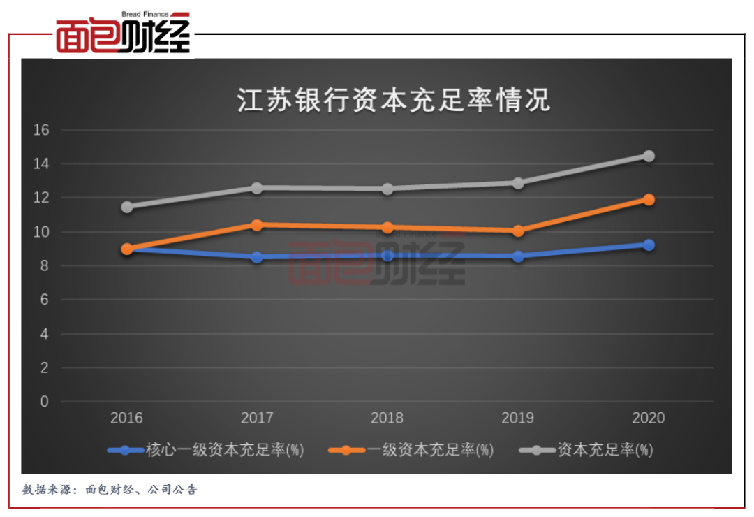 財報顯示,2020年江蘇銀行的資本充足率指標均在上升。