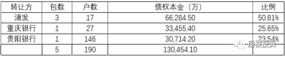 2017 年,貴州省銀行一級市場出包5 個,190 戶,本金13.05 億,其中浦發占比50.81%,出包最多。