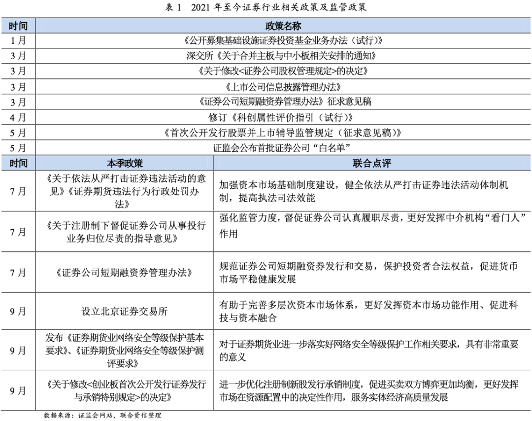 資本市場改革持續深化,“北交所”成立,打造服務創新型中小企業主陣地,多層次資本市場體系進一步完善;行業延續嚴監管。