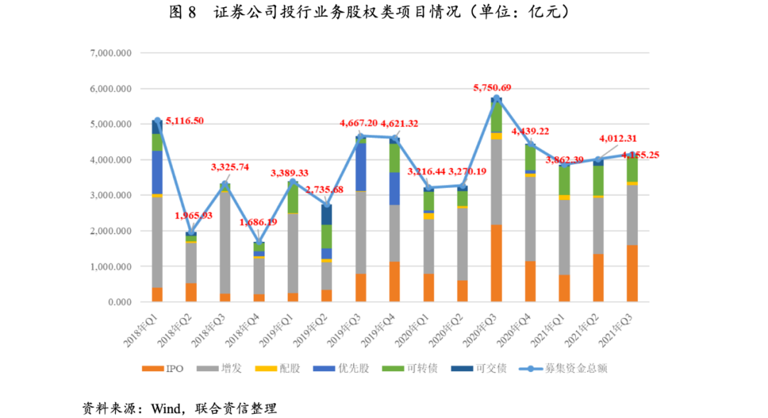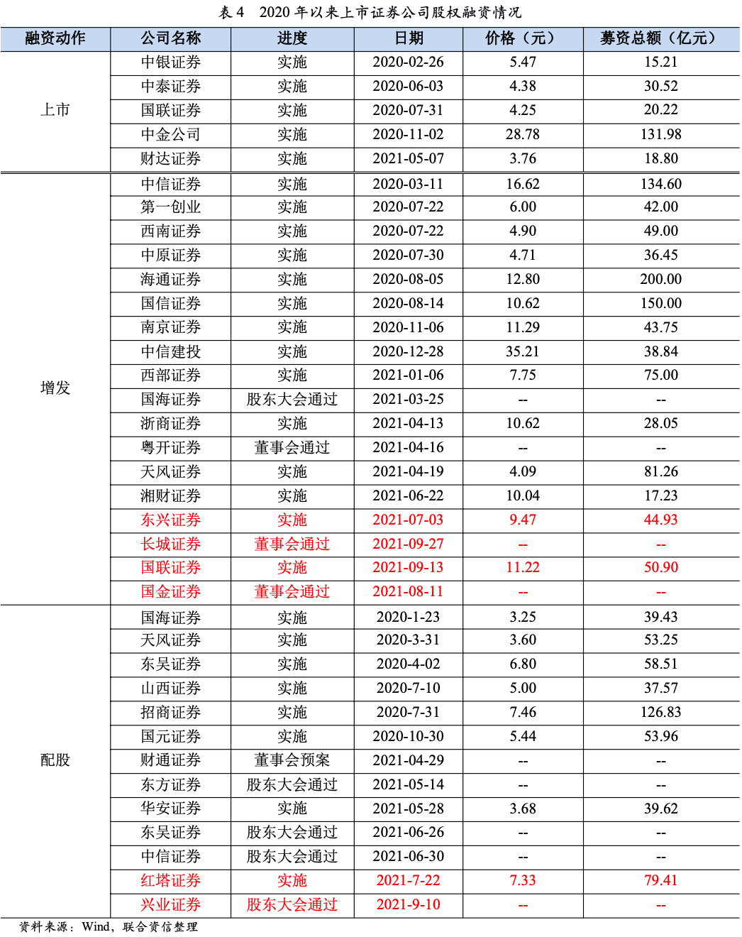 2021年第三季度,紅塔證券配股計劃進入實施階段,募集資金79.41億元;東興證券和國聯證券的增發方案已經進入實施階段,募集資金分別為44.93億元和50.90億元,預計隨著證券公司各項業務發展,資本補充趨勢將延續。