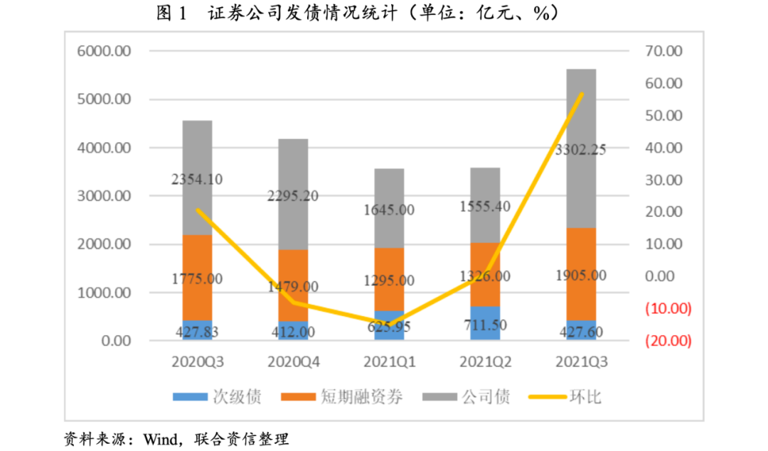 2021年第三季度,證券公司次級債到期規模為331.50億元,共計發行次級債募資427.60億元。