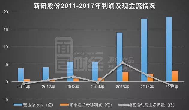 上市之后的新研股份主業增收乏力,銷售凈利率在2011至2013年由20.98%連續下降至17.78%,2014年雖回升至19.98%,但仍低于上市首年。在這樣的業績背景下,公司進行了巨額并購。