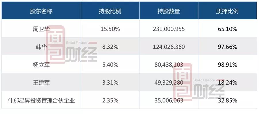 近三年來,除了多次定增和非公開發行公司債券,公司股東還頻頻質押手中股份。截止2018年3月31日,公司主要股東股份質押情況如圖: