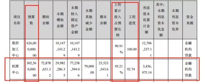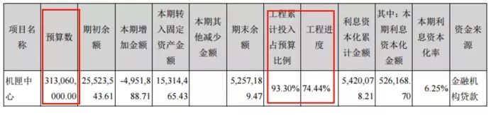 2016年機匣中心的完工進度已經達到92.74%,而一年之后的2017年,其完工進度卻變為了74.44%。同時,該項目預算數也發生了變化。在2017年以前的財報中,機匣中心預算金額均為3.03億元,甚至在2017年半年報中,項目預算也還是3.03億元,完工進度也已達到93.24%。而到了2017年年報中,項目預算突然變為了3.13億元,同時完工進度倒退近20%。