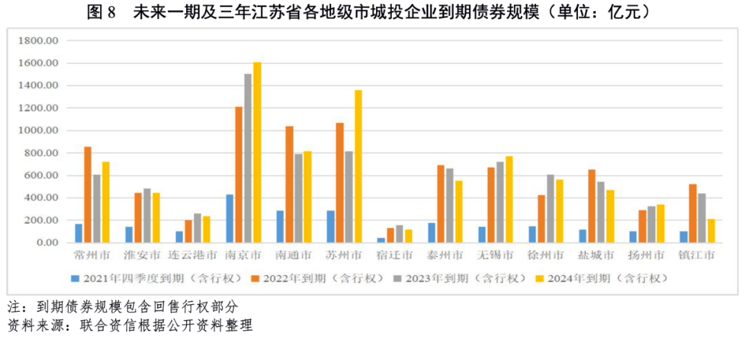 三、江蘇省各地級(jí)市城投企業(yè)債券到期情況