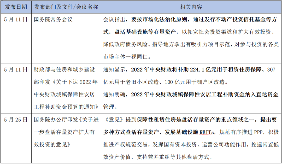 表1:2022年5月國家層面租賃住房相關(guān)重點政策匯總