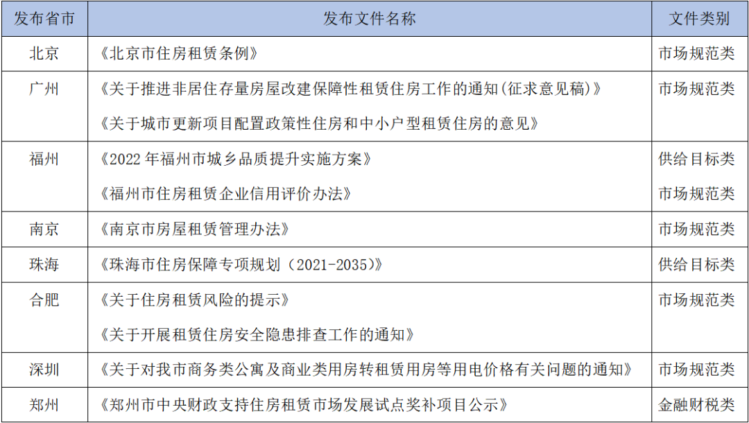 表2:2022年5月各地租賃住房相關(guān)重點政策匯總