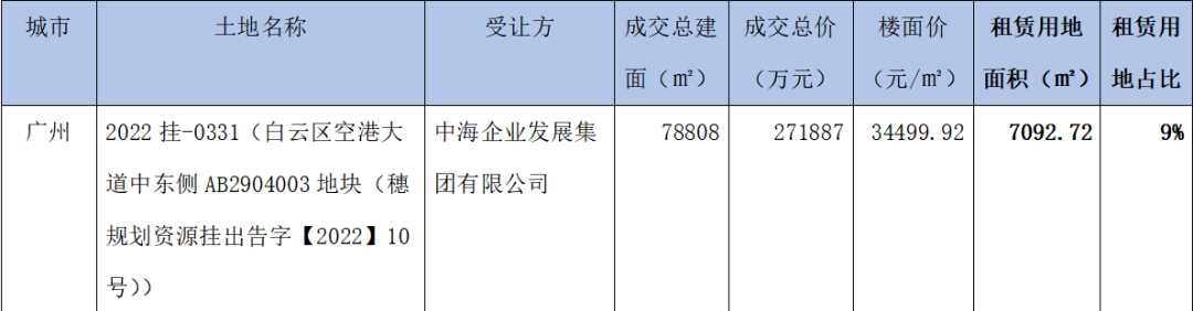 五城涉租賃用地拿地的主角依舊為國央企。五城成交的租賃用地中,最大一宗租賃用地被越秀以2.01億元競得,該地塊位于廣州市白云區(qū)廣龍路,純租賃用地,建設(shè)面積約6.9萬平方米。