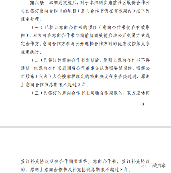 2022年3月26日,深圳市龍崗區人民政府辦公室印發了《龍崗區社區股份合作公司集體用地開發和交易監管實施細則》(深龍府辦規〔2022〕2號,以下簡稱“龍崗集體用地監管新規”)。新規取消了“意向合作方”的流程,對存量的意向合作方參與正式合作方的招商設置了優惠條件,但對《意向合作書》的到期續簽等給予了明確的限制。