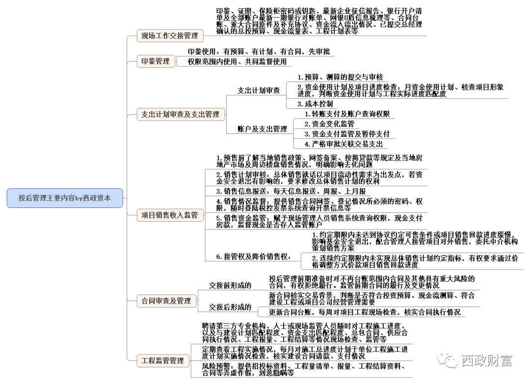 1. 決策層(股東會、董事會):股東會在持股期間主要作用是選舉董事會,董事會決策事項較為細化、個性化,對于項目公司賬戶開立、重大資產處置、對外擔保等關鍵風險點的控制需作為董事會決策事項。執行層包括管理層、日常運營層,執行層主要起到監督作用,如前融機構派駐財務代表進行資金監控等。