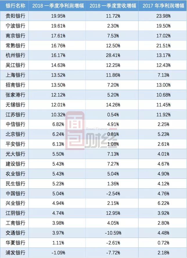 2017年年報季正式結束,2018年一季報數據也基本出齊。之前,面包財經在分析部分銀行財報時曾預告過:等年報出齊了,再從整體行業的角度來看一下各家銀行的表現。