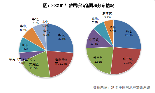 多元渠道擴充土儲,七成非招拍掛取得。除招拍掛市場外,雅居樂還通過收并購、產城融合、城市更新等方式補充土儲,這部分新增土儲建面占比達70.2%,相比2020年增長15.2個百分點。其中,產城融合和城市更新共計占比47.7%、收并購占22.5%。值得一提的是,當前通過產城融合和城市更新鎖定的預計土儲建面分別為2410萬平方米和1377萬平方米,待未來納入土儲后,這部分占比將進一步提升,顯然已成為企業重要的拿地手段。