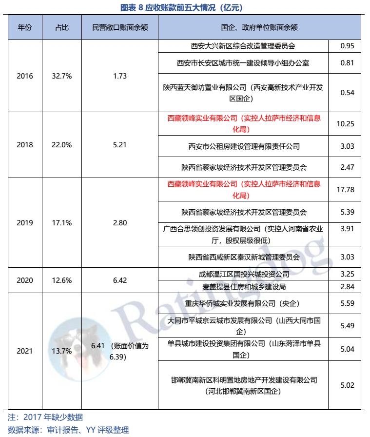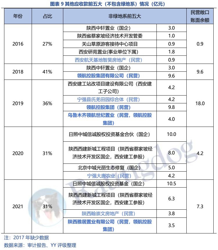 梳理分析下來,可知西安建工混改完成后新簽合同大幅增加,同時,房建占比提升,展業(yè)區(qū)域由西安市內拓展至西北區(qū)域;對綠地風險敞口51億元,其他對手方以民營房企和弱國企為主,資質較弱;綠地展期后,暫無前臺成交,預計后續(xù)隱含將明顯弱化。廣西建工混改完成后業(yè)務變化不大,仍以房建為主,集中在廣西展業(yè);與綠地資金牽連不大(或未披露),但業(yè)務對手方資質弱,以出險房企、失信民營房企和弱城投為主;在年內到期或行權債券約60億元的情況下,綠地展期后隱含急劇弱化,YY隱含飆升至20以上。