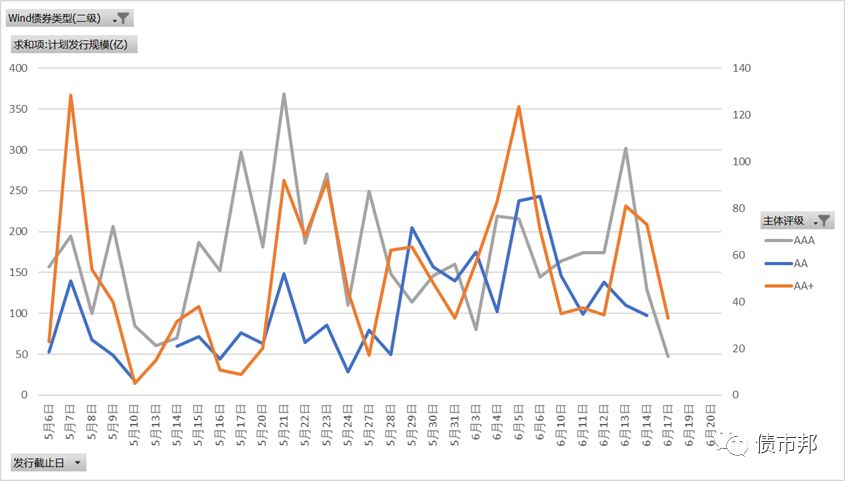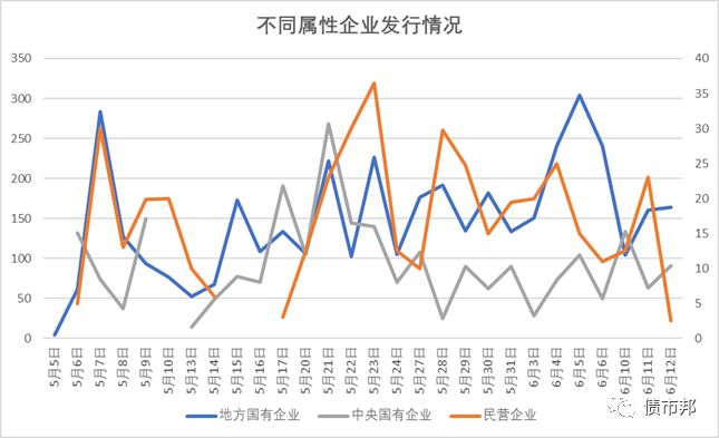 從不同評級發行情況來看,AAA級發行人和AA發行人保持了一致的發行節奏,沒有出現AAA瘋搶AA遇冷的情況;從不同所有制企業發行情況來看到,也沒有發現民企債被拋棄的情況(民企債券以前沒有好發,現在也談不上拋棄)