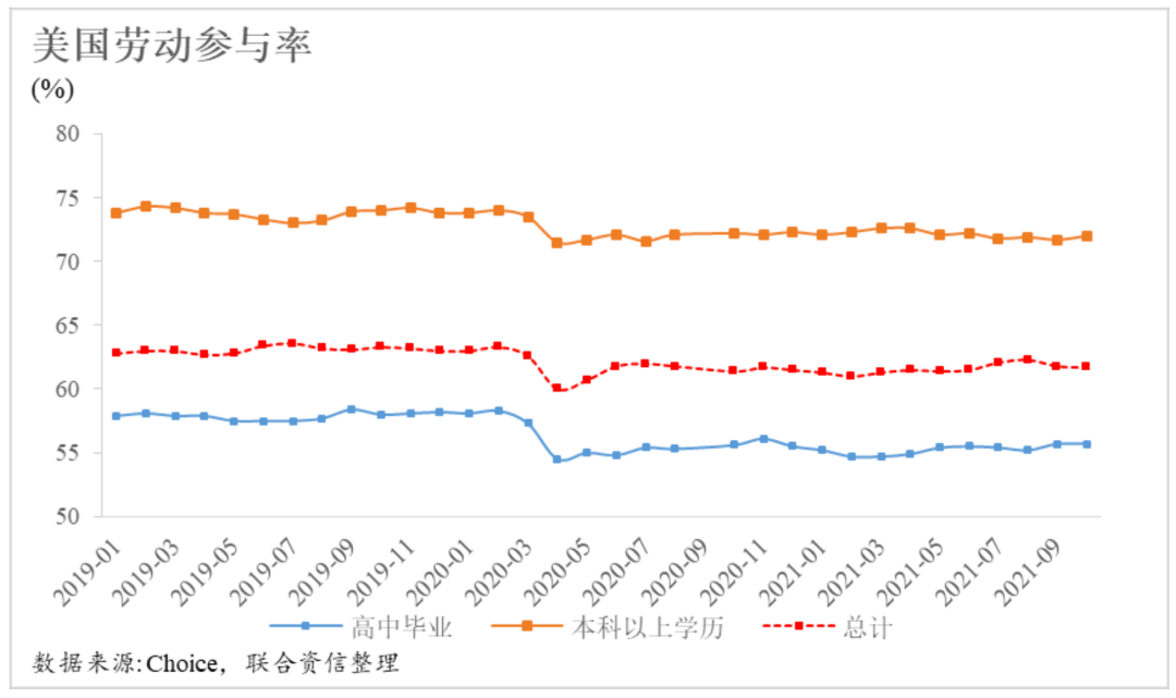 2.對新冠疫情反彈的擔憂、提前退休人數的增加等因素導致勞動參與率仍未回升至疫情前水平,本科以上就業人員勞動參與率遠高于整體水平。