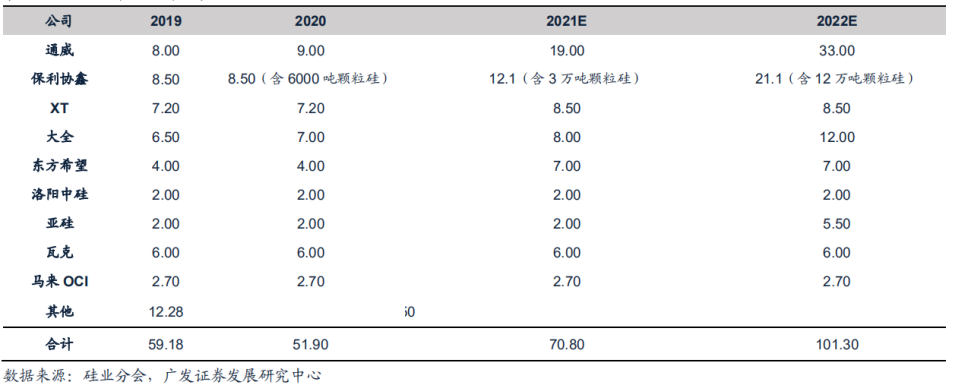 據悉,通威產能有望在2021年底達到18萬噸,未來1年里,140億元投資的樂山20萬噸高純晶硅項目逐步投產,通威產能預計在2022年底達到33萬噸。