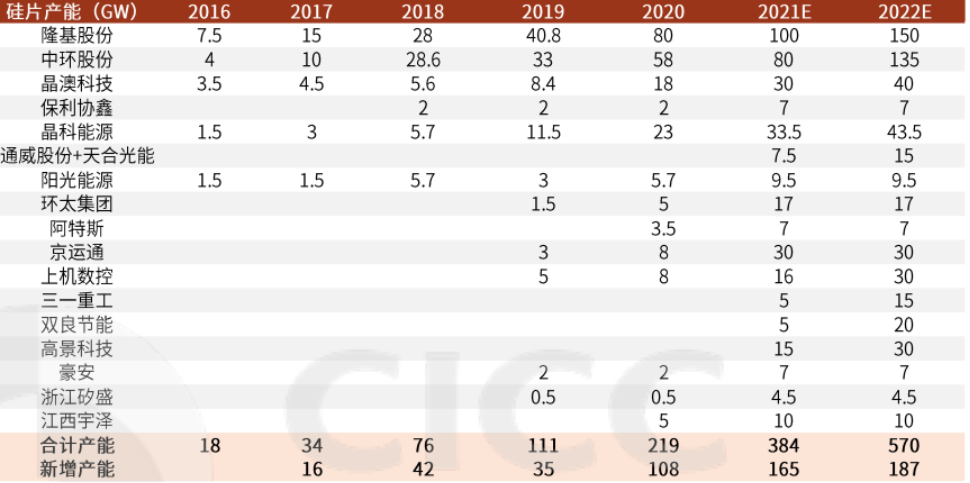 尤其是隆基,得益于在單晶硅片領域開創先河以及多年的深耕,長期占據龍頭位置。