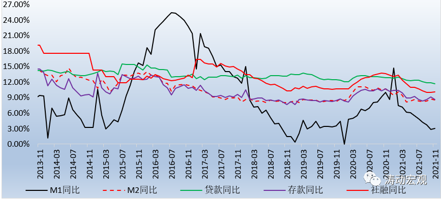 2、今年11月當月,M1同比增速達到3%,環比上升0.20個百分點,這是自今年2月以來M1同比增速首次出現環比上升,這表明企業的資金面實際上是相對充裕的。