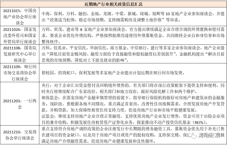 2、今年10-11月,政策層面在個人住房按揭、企業發債以及地產企業的開發貸、并購貸等方面的約束有所放開。
