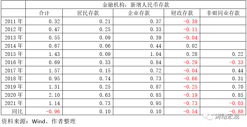 今年11月當月,居民存款與企業存款分別新增0.73萬億和0.95萬億,同比分別多增0.10萬億和0.10萬億,創歷年11月新增最高。與此同時,財政存款與非銀同業存款10月當月分別少增0.54萬億元和0.88萬億元,反映出政府債券發行、投資支出增加以及非銀體系流動性下降等因素。