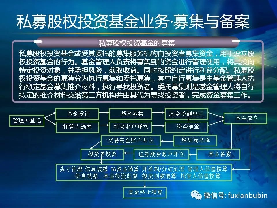 私募股權投資基金的募集是指私募股權投資基金或受其委托的募集服務機構向投資者募集資金,用于設立股權投資基金的行為。基金管理人負責將募集到的資金進行管理使用,將其投向特定投資對象,并承擔風險,獲取收益。同時按照約定進行利益分配。私募股權投資基金的募集分為自行募集和委托募集,其中自行募集是由基金管理人執行擬定基金募集推介材料,執行尋找投資者。委托募集則是基金管理人將自行擬定的推介材料交給第三方機構并由其代為尋找投資者,完成資金募集工作。為便于厘清整個框架脈絡,現以圖解的方式,將私募股權投資基金募集主體、募集客體、基金組織形式的選擇、基金的募集行為的約束、基金募集的方式與流程以及募集產品備案的相關內容,以圖解的形式加以梳理,具體文字詳解參見“私募基金行業?私募股權投資基金?募集與備案”。