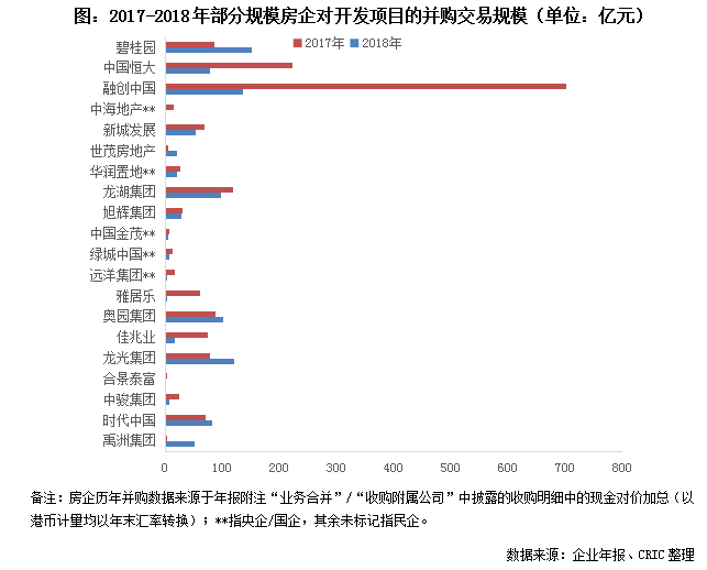 其次,當前參與市場收購的主力以國企、央企為主,國企、央企雖具備資金優勢,收購意愿大但決策效率偏低,對并購推進慢,難以適應市場化并購時效性要求。而此前2017-2018年的并購高峰期,中海、華潤置地、金茂、綠城、遠洋等國企收并購力度明顯低于同梯隊其余民企,且國企的大型收并購多以政策性的重組為主,如保利與中航地產、中海與中建的重組,實現國企內部資源整合。