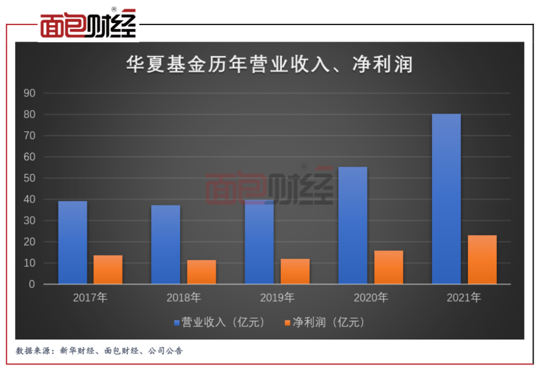 中信證券財報顯示,華夏基金2021年實現營業收入80.15億元、凈利潤23.12億元,同比均大幅增長。