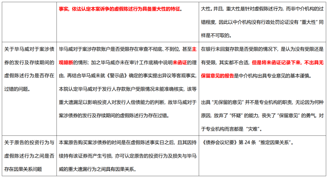 通過上述分析不難發現,由于構成欺詐發行,在五洋債中中介機構其實無法就損失賠償范圍作出有效的抗辯,只能就過錯程度作出抗辯,恐怕這也是兩個案件形成如此極端結果的原因之一。