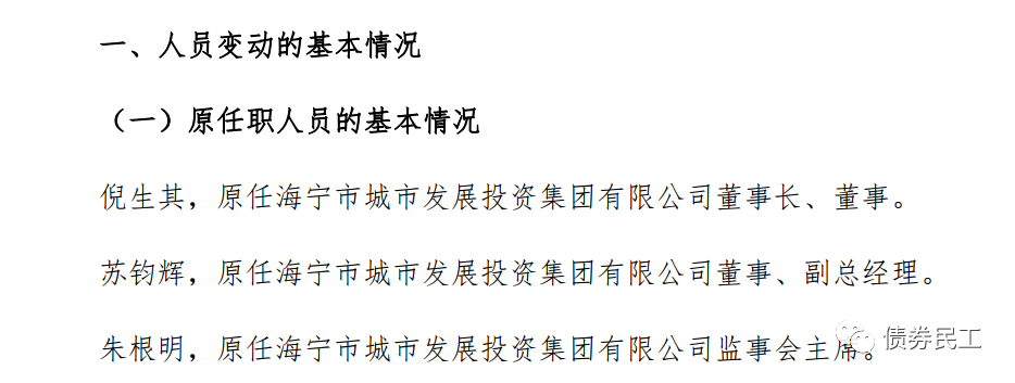 2、2022年1月14日,海寧市城市發(fā)展投資集團(tuán)有限公司公告,公司的董事長、副總經(jīng)理、監(jiān)事會(huì)主席發(fā)生變動(dòng),并新增了部分董事。