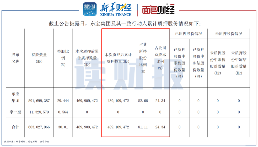 圖4:東寶集團及其一致行動人累計質押股份情況