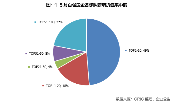其中萬科、華潤、中海、濱江、綠城和建發等新增貨值超過500億元。值得注意的是,建發在本月廈門、福州土拍中拿地近60億元,成為1-5月新增拿地金額最高房企。