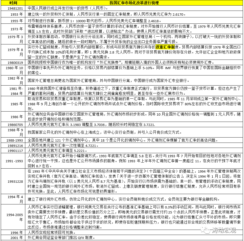(1)將官方匯率與調劑匯率進行并軌(將1美元兌人民幣8.7元作為基準),即人民幣匯率開始實行“以市場供需為基礎,單一的、有管理的浮動匯率制度”。