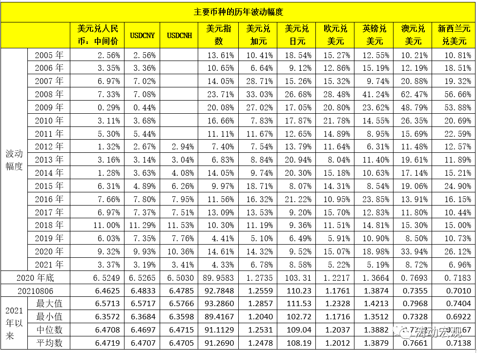3、從央行自身的角度來看,其并不希望人民幣一次貶到低或快速大幅升值,更不希望呈現趨勢性的變化,而是希望匯率呈現有升有貶的中高波幅特征,這也是為什么央行在貨幣政策執行報告中多次強調市場主體應主動做好匯率風險管理。特別是2016年-2019年期間波動幅度均在7%以上,在2020年波動幅度擴大至9%左右后,2021年的波動幅度可能會繼續維持在8-10%的區間。
