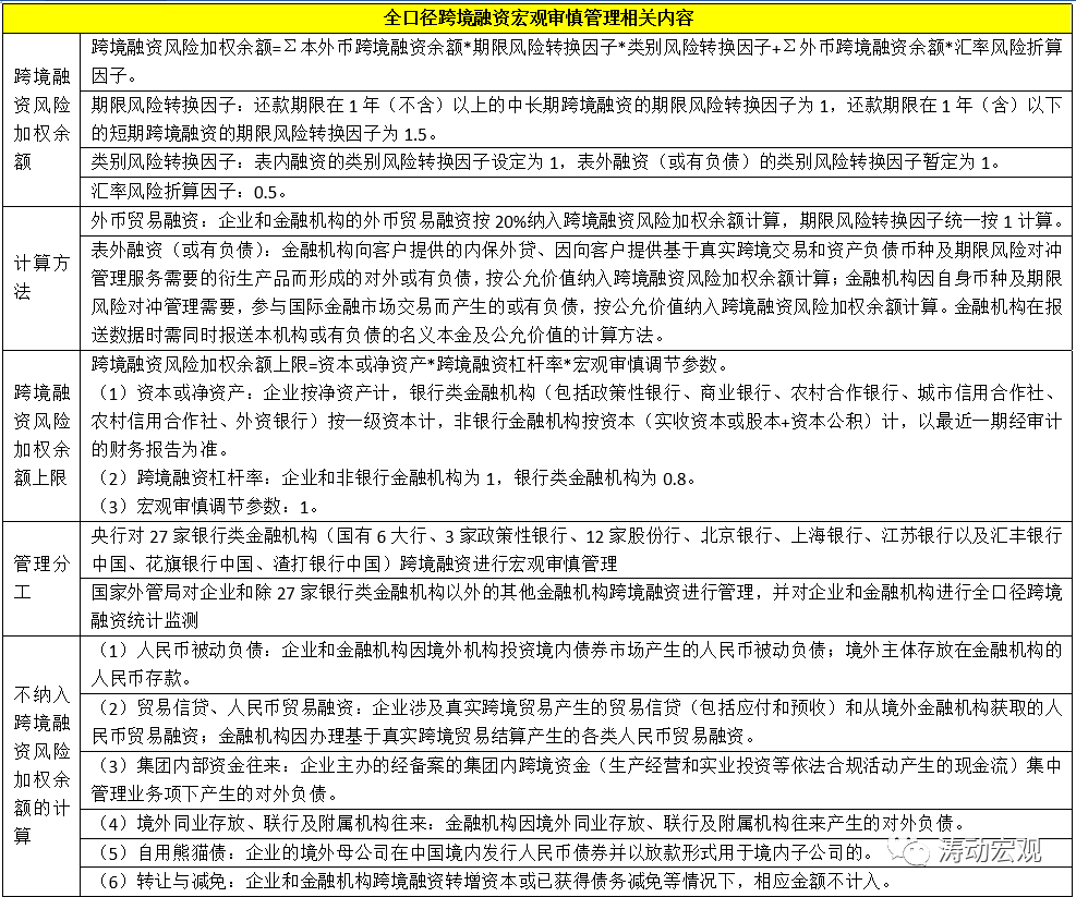(2)2016年4月29日,央行發布《關于在全國范圍內實施全口徑跨境融資宏觀審慎管理的通知》,決定將全口徑跨境融資宏觀審慎管理政策推廣至全國范圍,并建立宏觀審慎規則下基于微觀主體資本或凈資產的跨境融資約束機制,企業和金融機構均可按規定自主開展本外幣跨境融資。同時,企業和金融機構開展跨境融資按風險加權計算余額(已提用未償余額),風險加權余額不得超過上限,即:跨境融資風險加權余額≤跨境融資風險加權余額上限。