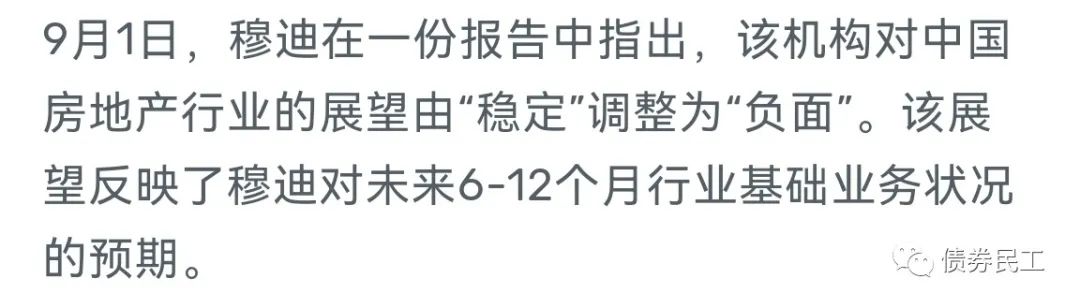 2、同樣是在2021年9月1日,穆迪評級將中國房地產(chǎn)行業(yè)的展望由“穩(wěn)定”調(diào)整為“負面”。當(dāng)然,這不是房地產(chǎn)行業(yè)第一次評級展望被調(diào)整為負面,此前的2021年7月27日,中誠信國際的公眾號發(fā)布公告,將中國房地產(chǎn)行業(yè)展望由穩(wěn)定調(diào)整為負面。需要注意的是,穆迪評級持有中誠信國際30%的股份。