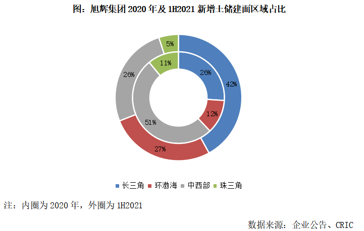 在此窗口期下,房企通過(guò)戰(zhàn)略“瘦身”,得以趁機(jī)調(diào)整布局,有的放矢,推進(jìn)區(qū)域深耕戰(zhàn)略,蓄勢(shì)待發(fā)迎接下一輪投拓。例如旭輝集團(tuán),一直以來(lái)堅(jiān)持區(qū)域深耕戰(zhàn)略,多次調(diào)整優(yōu)化組織架構(gòu),控制管理半徑,以提高效能、更好地配合區(qū)域深耕落地。2021年上半年,旭輝顯著增加了長(zhǎng)三角及環(huán)渤海的投資力度,新增土地建筑面積占比分別較2020年全提升16和15個(gè)百分點(diǎn)。