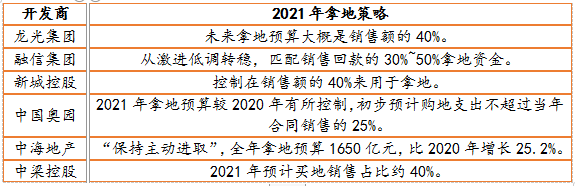 一是財(cái)務(wù)狀況好的開(kāi)發(fā)商擁有更多資金和流動(dòng)性可用于購(gòu)入最理想的地塊,2021年1~6月的拿地金額已明顯超過(guò)去年同期,并超過(guò)了此次40%的紅線。如招商蛇口、綠城中國(guó)、華潤(rùn)置地、金地集團(tuán)、龍光集團(tuán)、中梁控股等。