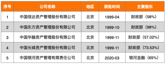所謂四大AMC,即1999年財政部出資設立的信達、東方、長城和華融,不難看出,這四大全部是國家財政部控股,彼時為處置國有銀行不良資產而成立的。