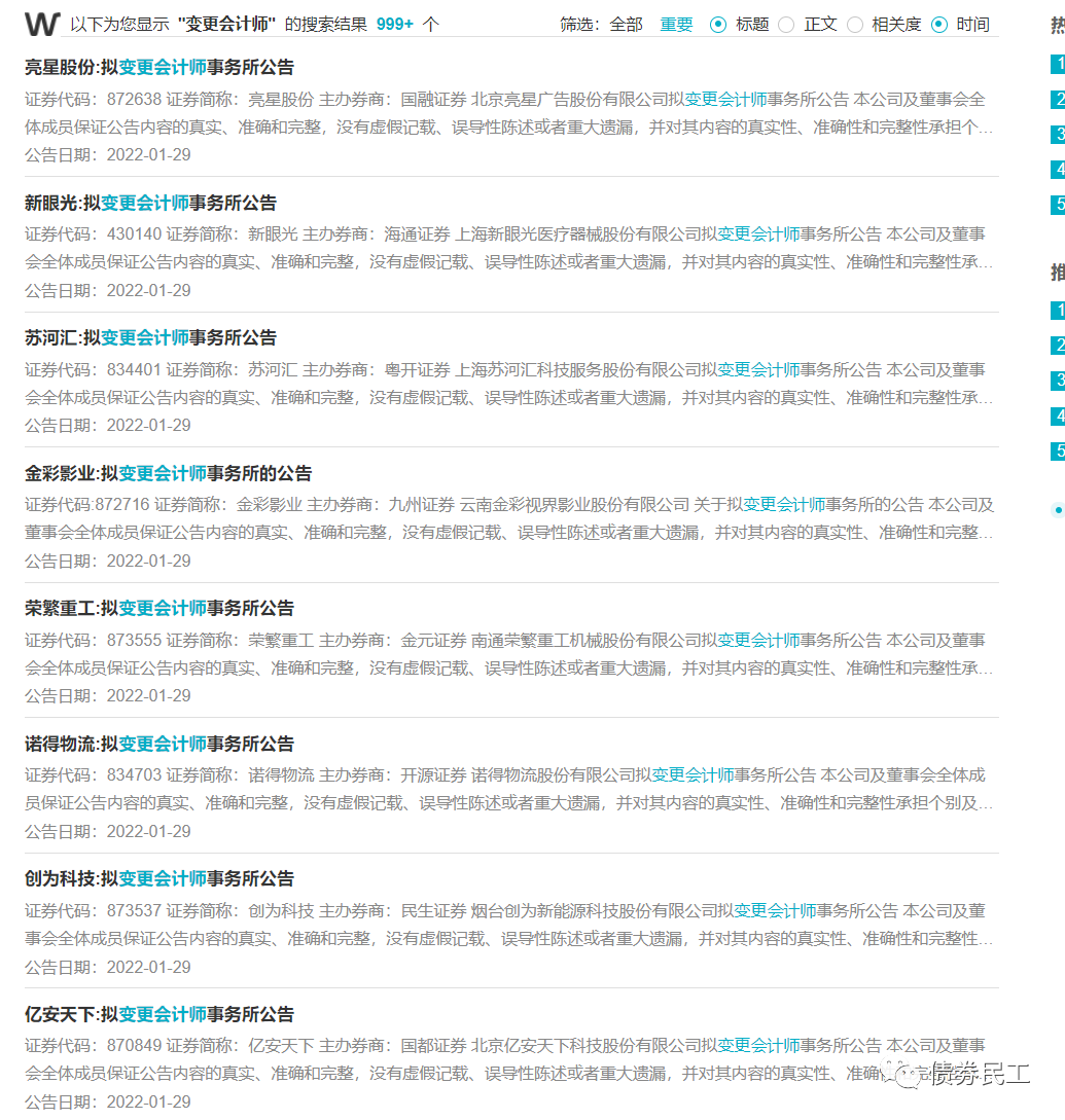 每年年報的質量對于上市公司和債券發行人來說至關重要,能夠直接影響公司在市場上的認可度。在中介機構違規就會被處罰的嚴監管時代,選擇一個合適的會計師事務所就更顯得異常重要。網上隨手一搜,上市公司和債券發行人變更會計師事務所的公告隨處可見。