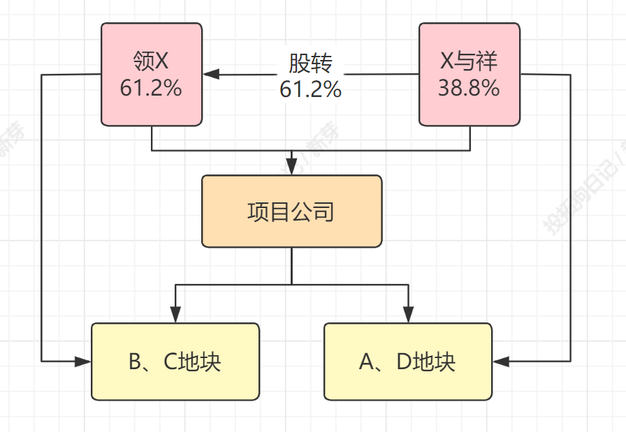 即,領(lǐng)地收購61.2%的股權(quán),但雙方約定“該部分股權(quán)”對應(yīng)“B、C地塊100%開發(fā)收益權(quán)”。瑞與祥剩下38.8%對應(yīng)A、D地塊開發(fā)收益權(quán)。