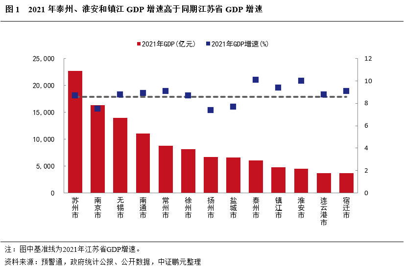 經(jīng)濟(jì)情況:2021年江蘇省13個(gè)地級(jí)市GDP排位順序未發(fā)生變化,蘇州、南京和無錫GDP規(guī)模依舊處于領(lǐng)跑地位;95個(gè)區(qū)縣中除邗江區(qū)外,其他區(qū)縣GDP規(guī)模均有所提升。2021年江蘇省13個(gè)地級(jí)市GDP規(guī)模均有所上升,且順序排位未發(fā)生變化,蘇州、南京和無錫GDP規(guī)模依舊處于頭部,三者GDP總和占江蘇省GDP的45.61%,2021年江蘇省大部分區(qū)縣GDP規(guī)模較2020年有所提升,但2021年邗江區(qū)GDP規(guī)模小幅下滑至1,117.29億元,響水縣GDP增速下滑0.1個(gè)百分點(diǎn)至6.0%。