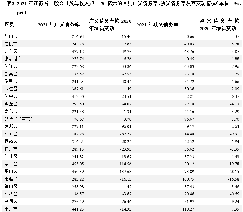 [2] 狹義債務(wù)率=地方政府債務(wù)余額/綜合財(cái)力;廣義債務(wù)率=(地方政府債務(wù)余額+城投有息債務(wù))/綜合財(cái)力;城投有息債務(wù)取數(shù)規(guī)則:以2021年9月末城投有息債務(wù)近似替代2021年末數(shù)據(jù),若城投公司未披露2021年9月末數(shù)據(jù),則以2021年6月末數(shù)據(jù)替代,城投口徑為WIND口徑。