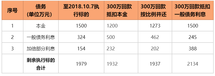 但我們以300萬元全額抵扣一般債務(wù)利息進行計算時,至2021年3月20日執(zhí)行標的仍有2134萬元,扣除其他執(zhí)行費用后,本案可以足額受償,并未超額扣劃。