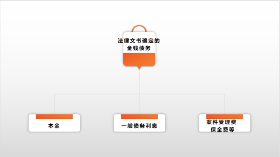 所謂“生效法律文書確定的金錢債務(wù)”即指在判決書、調(diào)解書、裁決書等生效的法律文書判決主文部分確定的法定義務(wù),不單指“債務(wù)本金”,一般可以歸納為3種類型: