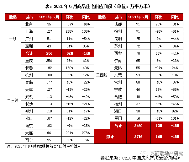 基于供應穩中有增的分析邏輯,隨著供應放量,預計2021年下半年成交有望持續小幅增長或與持穩,而三四線城市因需求透支疊加購買力下降,短期內成交或將保持回落趨勢。