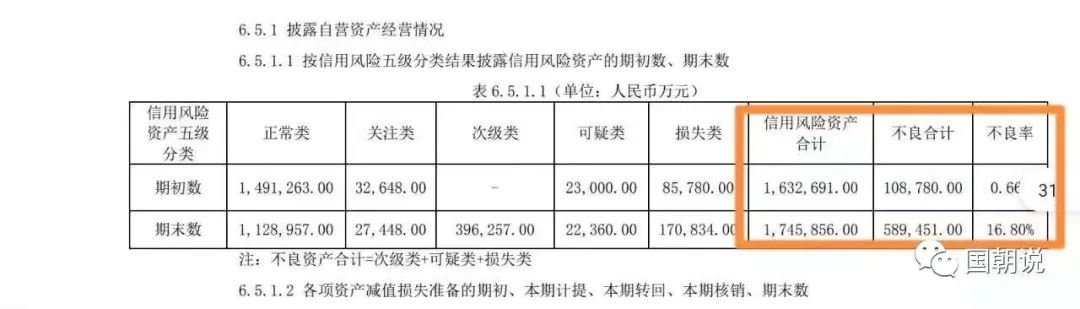 通常情況下,不良率=不良資產/信用風險資產,根據表格公布的數據,重新計算的不良率期初應該為6.66%,而期末的不良率竟然高達33.76%。