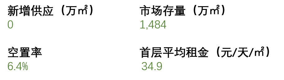 截至季末,全市空置率環(huán)比下降0.3百分點至三年新低6.4%,全市購物中心首層租金環(huán)比上升0.4%至每天每平方米人民幣34.9元。