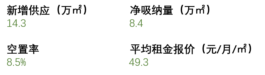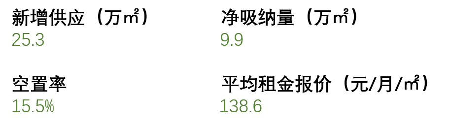 年初租賃淡季疊加疫情影響,新增供應(yīng)去化平淡,季度凈吸納量9.9萬平方米,環(huán)比下降62%,致使整體空置率上行一個百分點至15.5%。