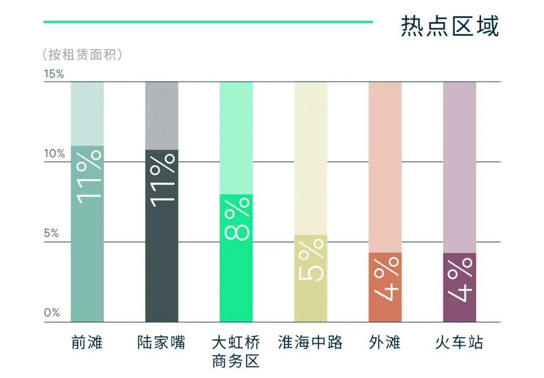 區(qū)位表現(xiàn)上看,南京西路、淮海中路可租面積減少帶動部分核心拓展區(qū)如北外灘、火車站、四川北路以及其他新入市項目去化持續(xù)改善,而濱江新興區(qū)域前灘、世博后灘優(yōu)質(zhì)樓宇持續(xù)吸引醫(yī)藥及工業(yè)制造業(yè)等搬遷擴(kuò)張,大虹橋商務(wù)區(qū)則錄得政府機(jī)構(gòu)職能建設(shè)的整棟辦公需求帶動板塊整體去化。