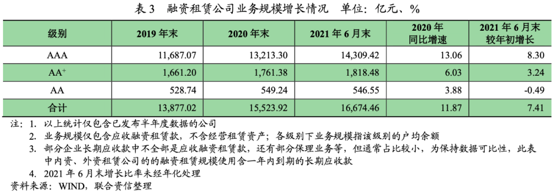 融資租賃公司內生現金流較為平穩,AAA級別融資租賃公司仍然在快速擴張業務,不同級別企業分化日益顯著。